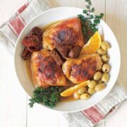 Do you prefer white meat or dark meat on chicken? I prefer dark meat over breast meat any day and this citrusy herbal chicken thigh dish was so easy to make in the Instant Pot (Amazon Affiliate Link). And my family fights over the dark meat too so of course, this rich and flavorful dish was a big hit when I served it the other night. If you prefer the dark meat too, you will love this Citrus Herb Basque Chicken recipe from a new Instant Pot Cookbook which is being published tomorrow called The Art of Great Cooking with Your Instant Pot by Emily Sunwell-Vidaurri of Recipes to Nourish. She loves Instant Pot as much as I do and her cookbook illustrates beautiful dishes you can create besides the usual stews and soups.